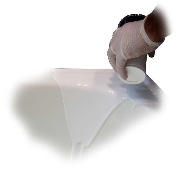 Акрил наносится в 2 этапа. Первый этап подразумевает грунтование основания ванны. Акрил втирается резиновым шпателем в стенки ванны. Тем самым забиваются все микропоры. Улучшается адгезия жидкого акрила с основанием ванны. Второй этап, жидкий акрил наливается сверху на борта и самотеком опускается до самого дна. Таким образом слой получается достаточно толстым и будет максимально прочно держаться.